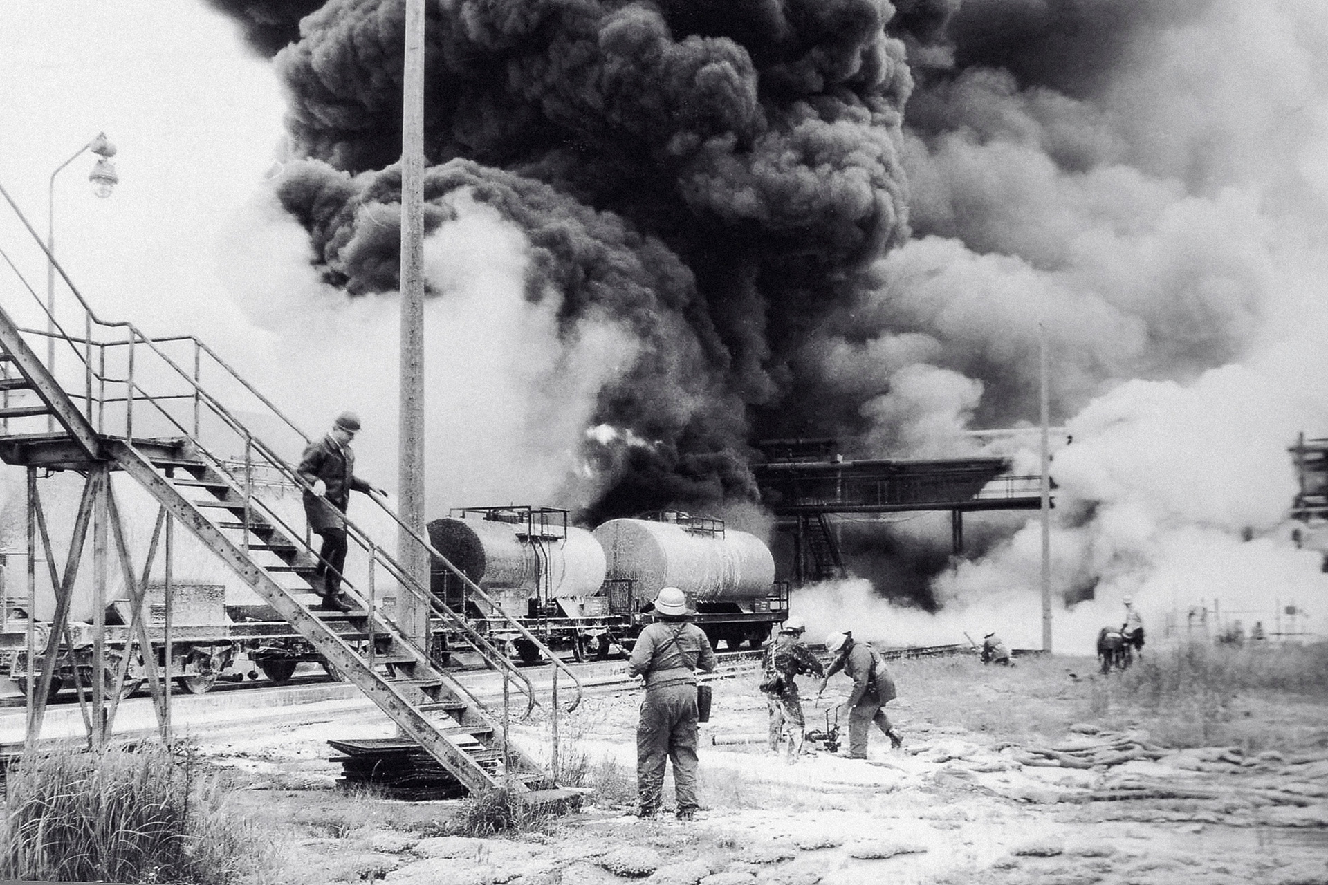 Ab 1938/39 konnte die A- und Z-Stelle ihre Arbeit nur noch sehr eingeschränkt fortführen, 1945 löste sie sich auf. Aber gerade nach dem Ende des Zweiten Weltkriegs war die Zusammenarbeit der Werkfeuerwehren überlebenswichtig. Den meisten von ihnen war es in der Endphase der Nazi- Diktatur gelungen, ihre letzten verbliebenen Einsatzfahrzeuge zu verstecken, sodass diese nicht für den Kriegseinsatz beschlagnahmt werden konnten. Die geretteten Fahrzeuge mussten nun ans Laufen gebracht werden, während die Industrieunternehmen die Produktion mit ihren noch vor- handenen Anlagen und Rohstoffen wieder aufnahmen. Allerdings waren Ersatzteile kaum mehr zu beschaffen, sodass die Mannschaften viel Zeit in aufwendige Suchaktionen investierten. Hier erwies sich der Austausch und das Miteinander für die Werkfeuerwehren als unerlässlich. Daraus erwuchs der Wunsch, die Zusammenarbeit durch eine neue gemeinsame Organisation zu stärken.